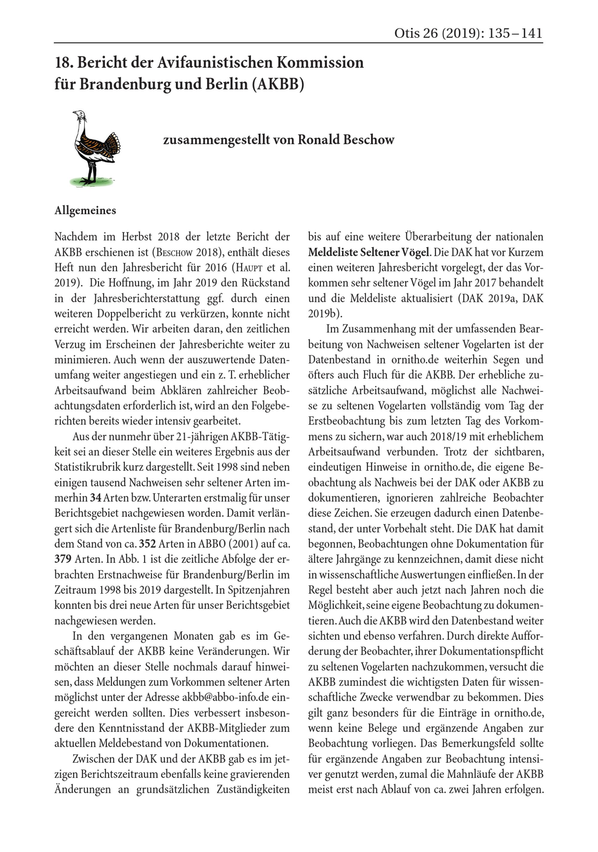 18. Bericht der Avifaunistischen Kommission für Brandenburg und Berlin (AKBB) zusammengestellt...