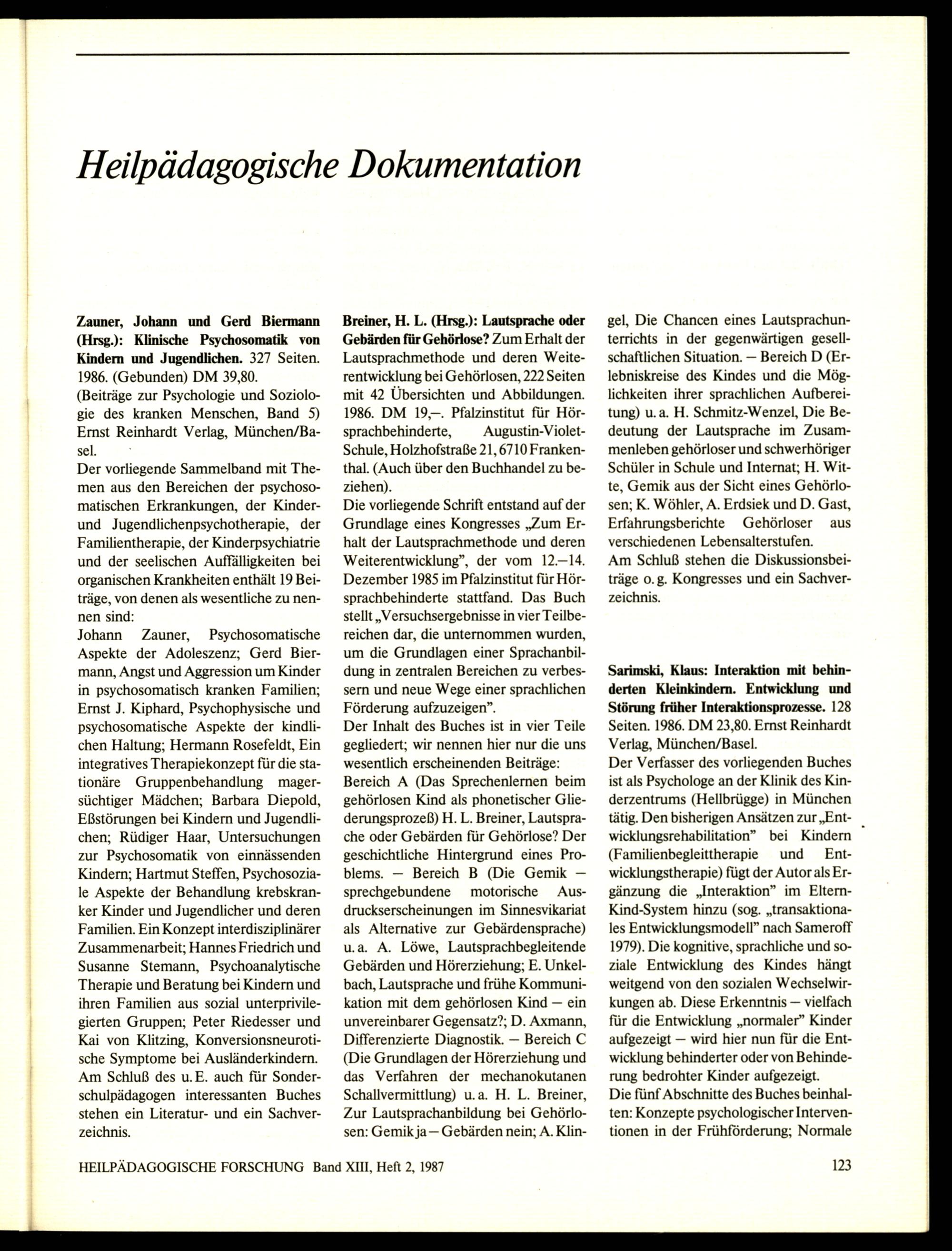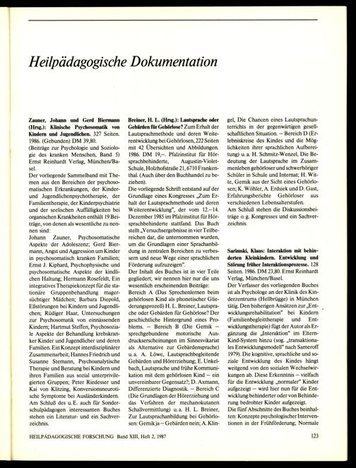Heilpädagogische Forschung : Zeitschrift für Pädagogik und Psychologie bei Behinderungen