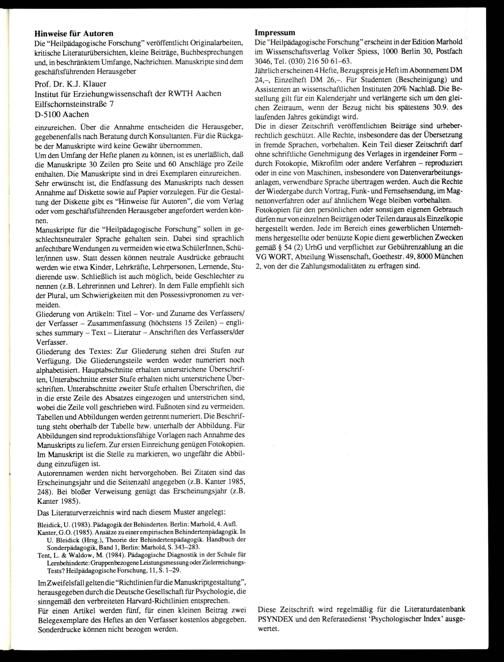 Heilpädagogische Forschung : Zeitschrift für Pädagogik und Psychologie bei Behinderungen