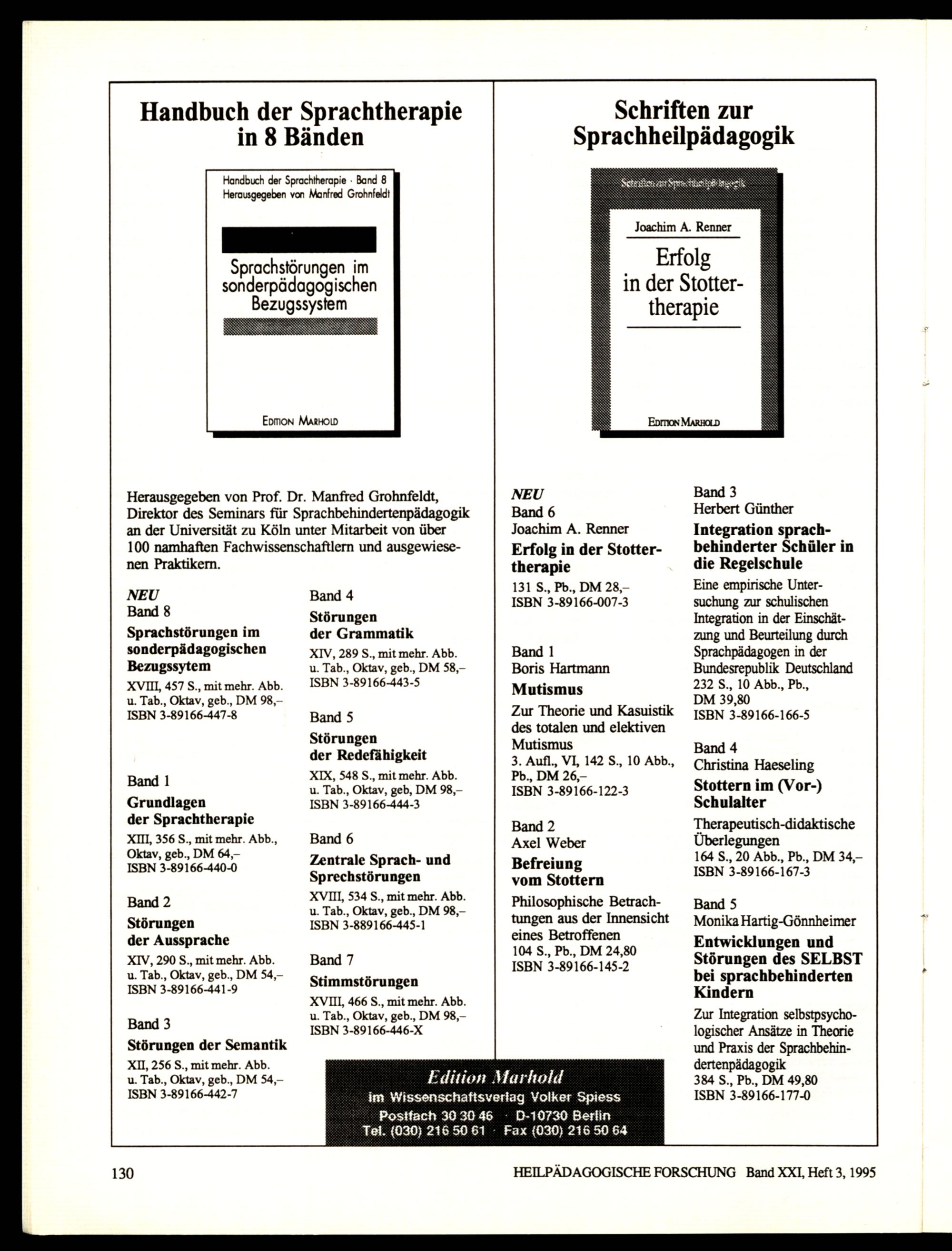 Heilpädagogische Forschung : Zeitschrift für Pädagogik und Psychologie bei Behinderungen