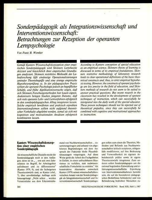 Sonderpädagogik als Integrationswissenschaft und Interventionswissenschaft: Betrachtungen...