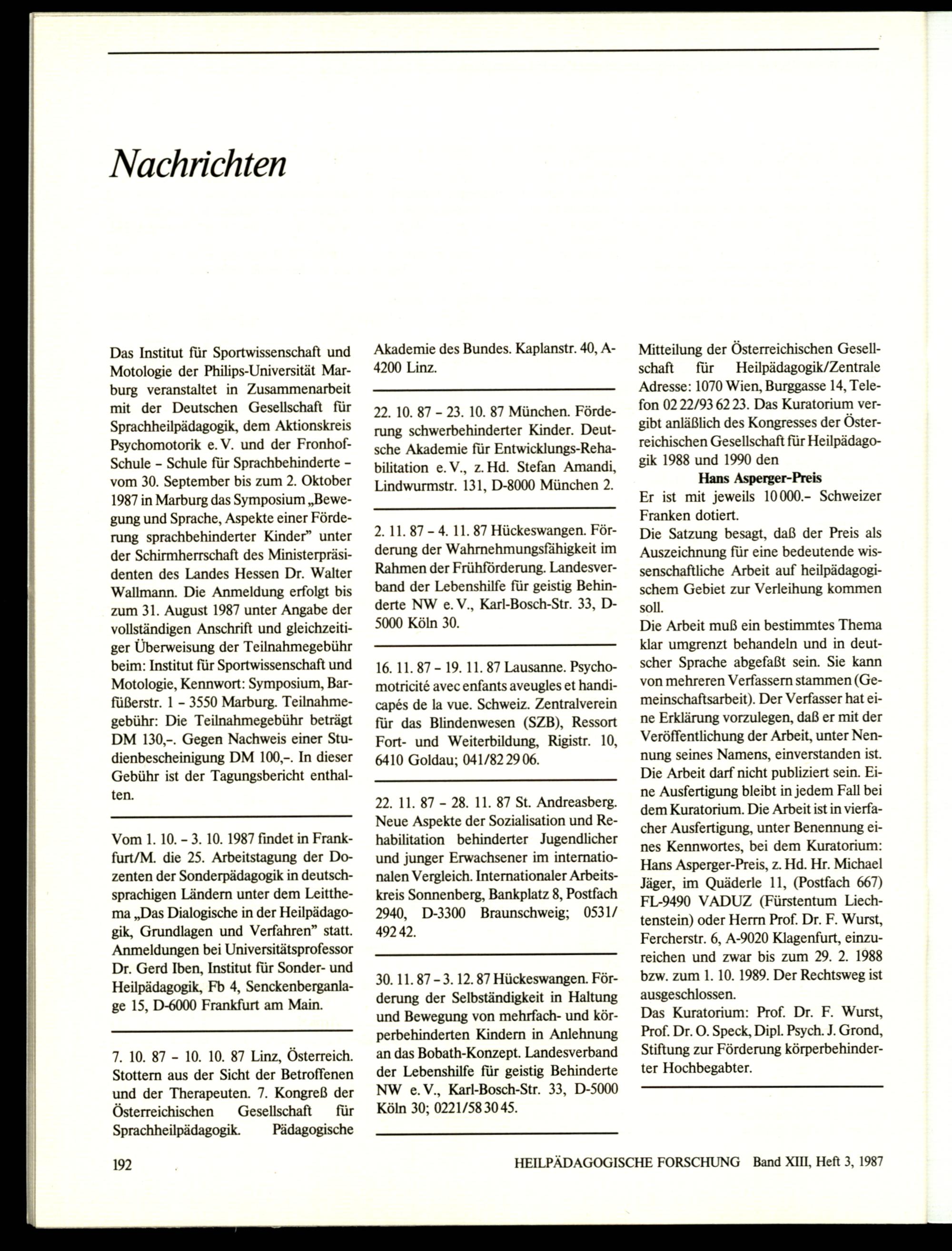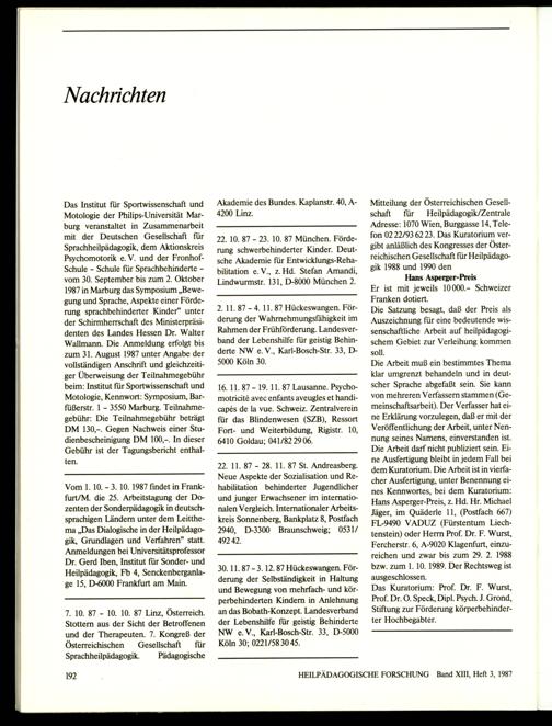 Heilpädagogische Forschung : Zeitschrift für Pädagogik und Psychologie bei Behinderungen