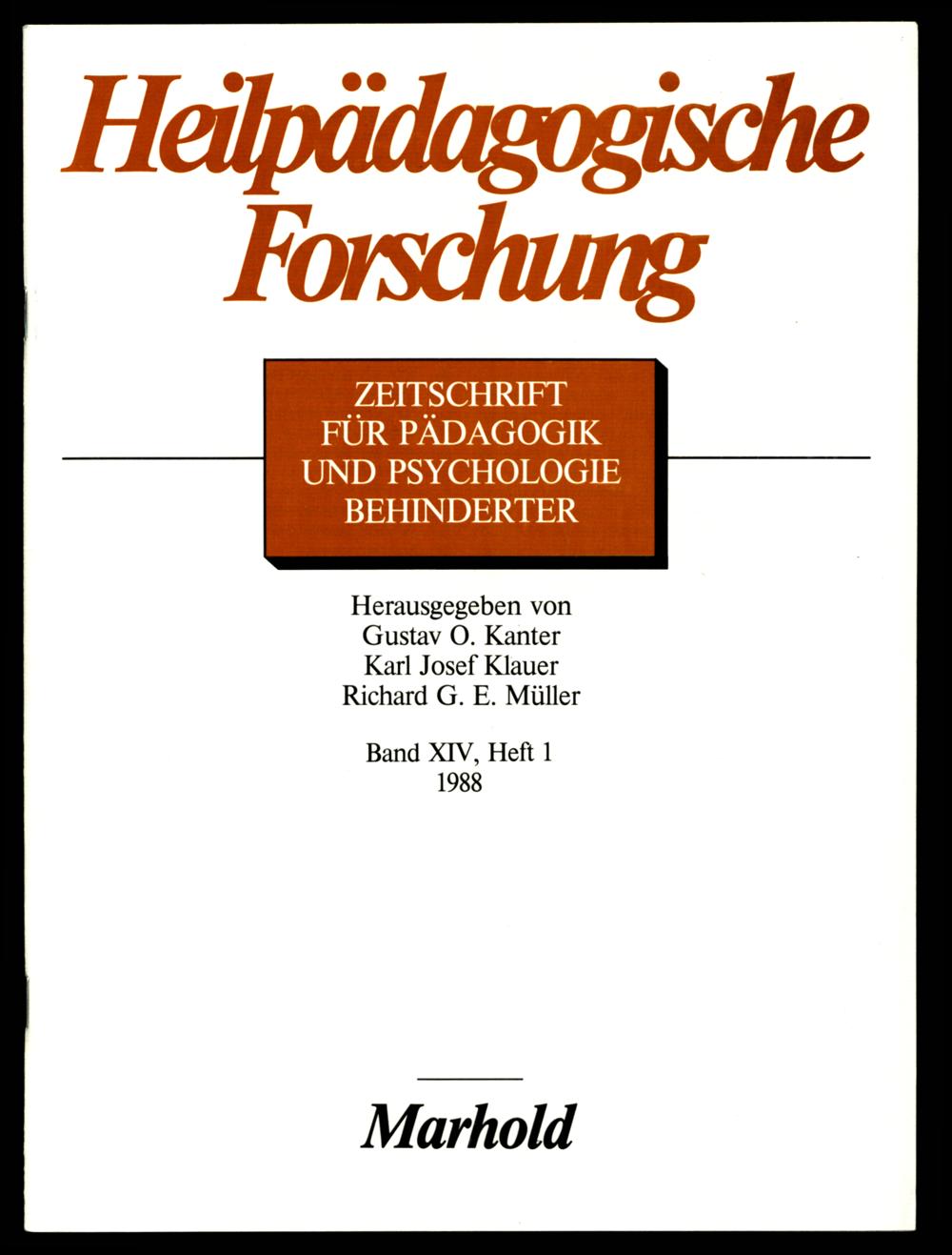 Heilpädagogische Forschung : Zeitschrift für Pädagogik und Psychologie bei Behinderungen