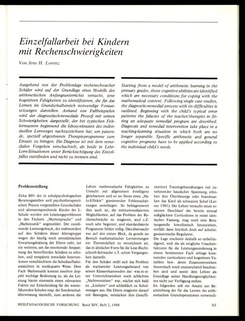 Einzelfallarbeit bei Kindern mit Rechenschwierigkeiten