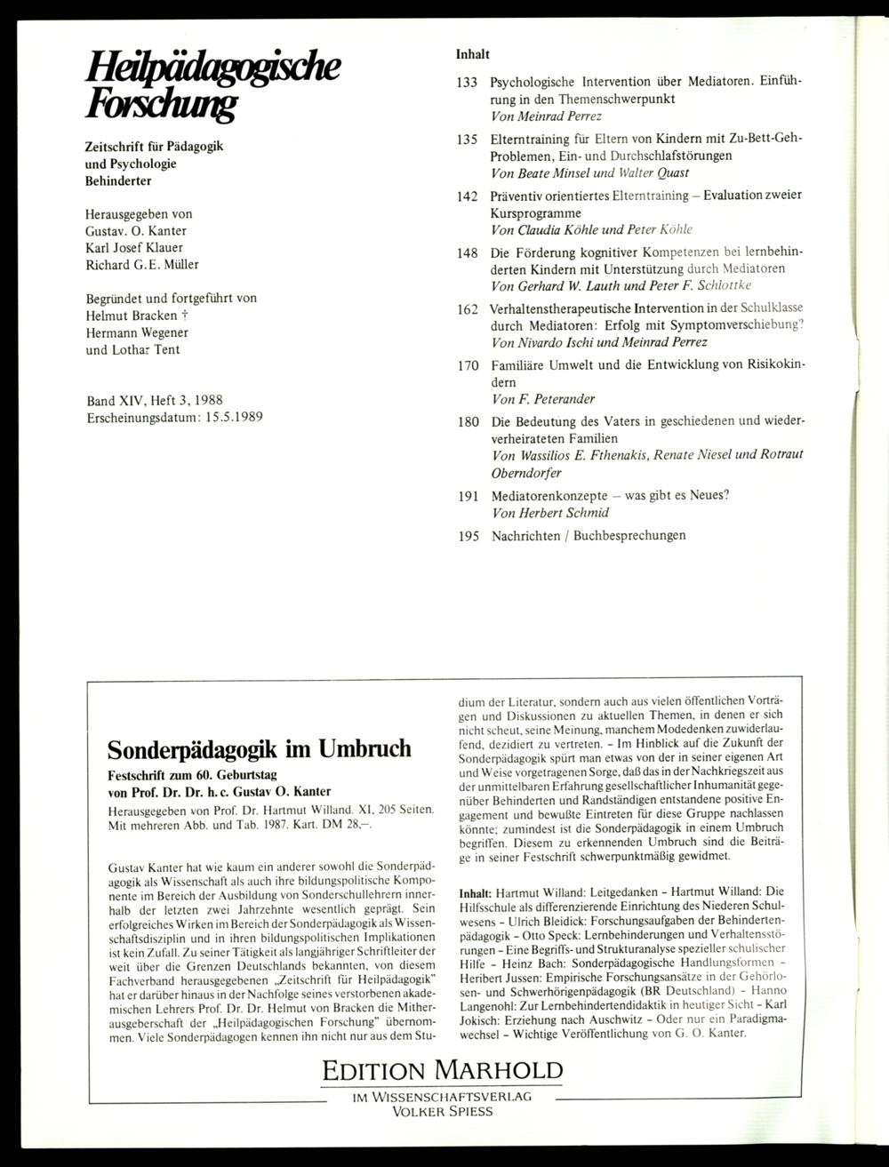 Heilpädagogische Forschung : Zeitschrift für Pädagogik und Psychologie bei Behinderungen