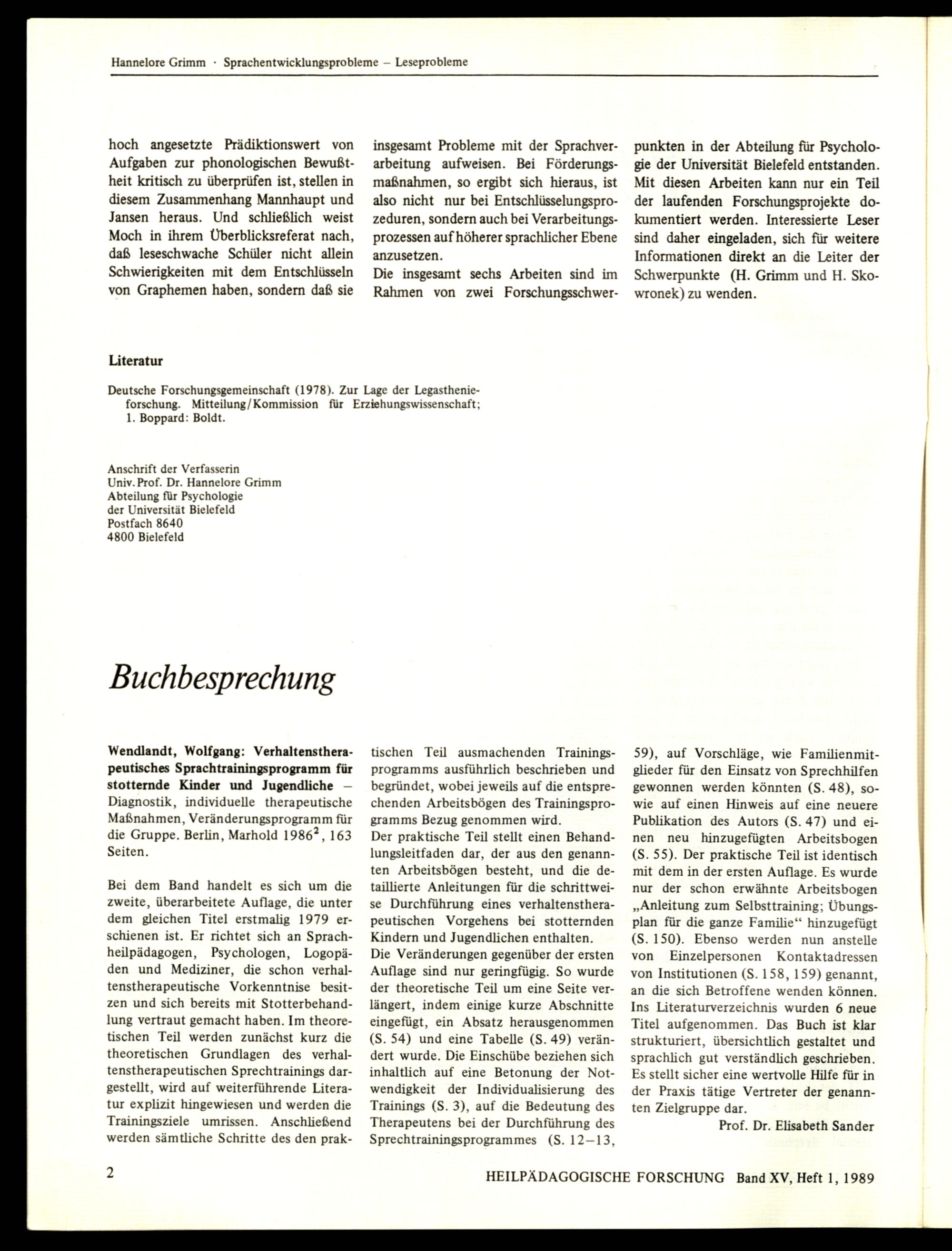 Heilpädagogische Forschung : Zeitschrift für Pädagogik und Psychologie bei Behinderungen