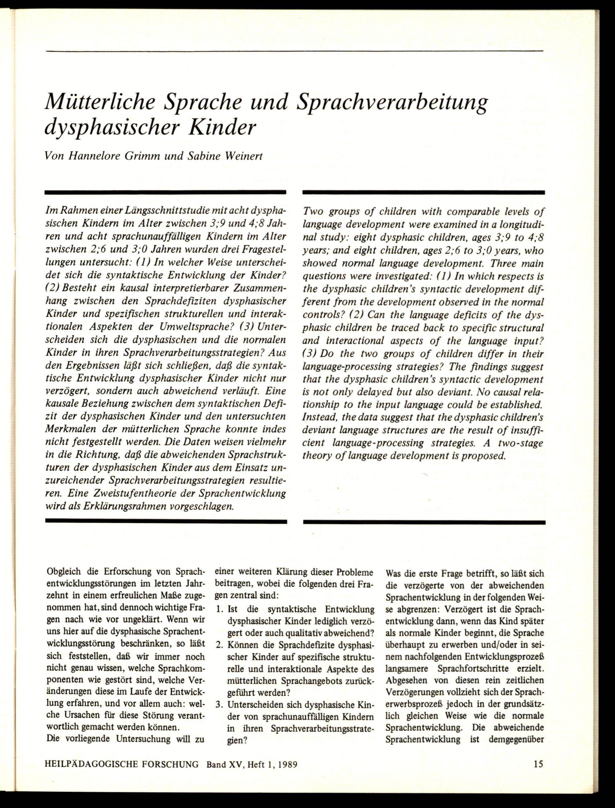 Mütterliche Sprache und Spracheverarbeitung dysphasischer Kinder