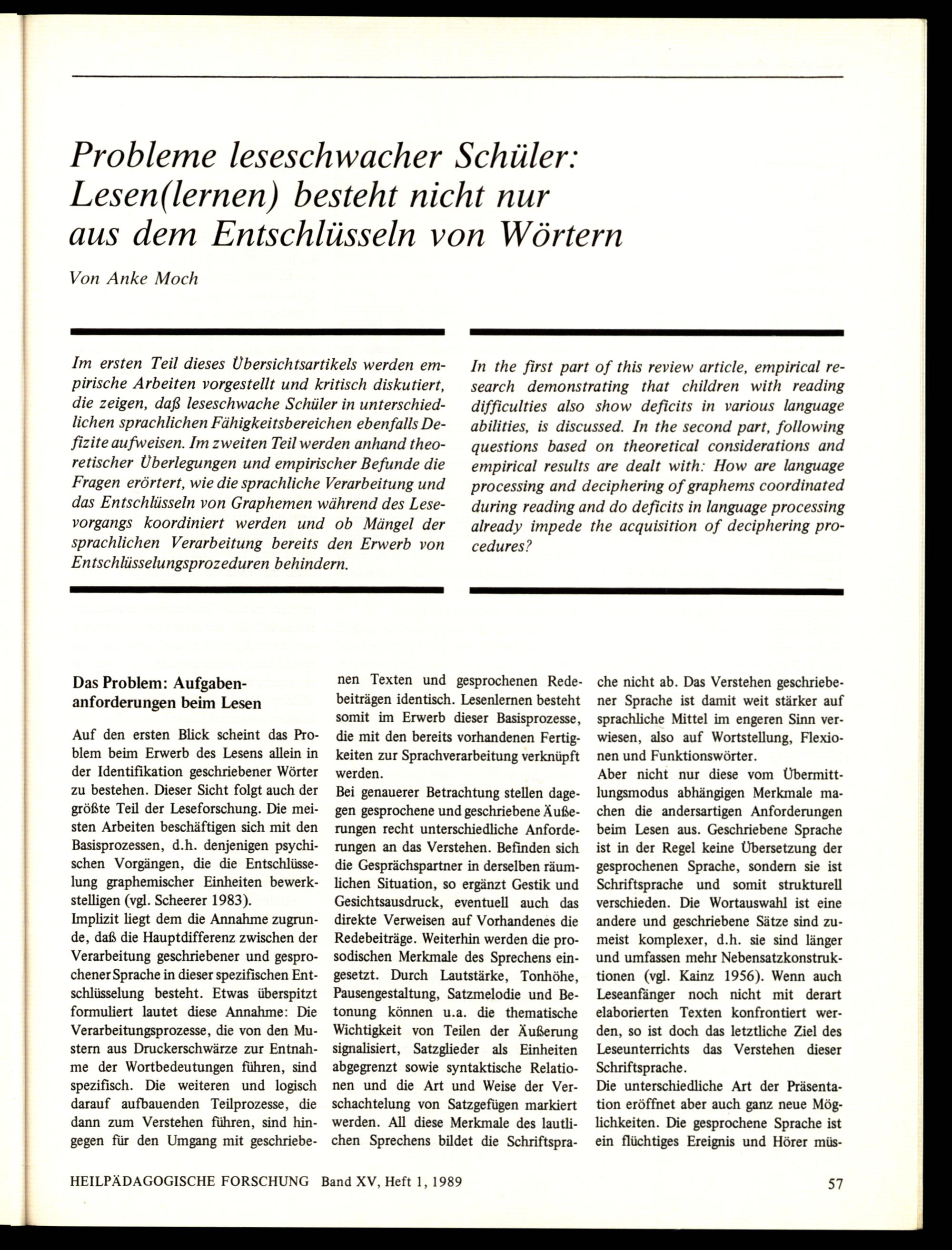 Band XV, Heft 1 (1989)