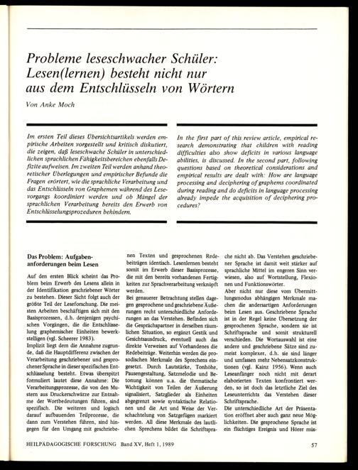Probleme leseschwacher Schüler: Lesen(lernen) besteht nicht nur aus dem Entschlüsseln...