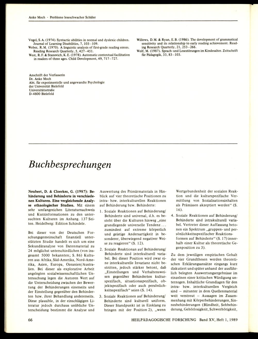 Band XV, Heft 1 (1989)