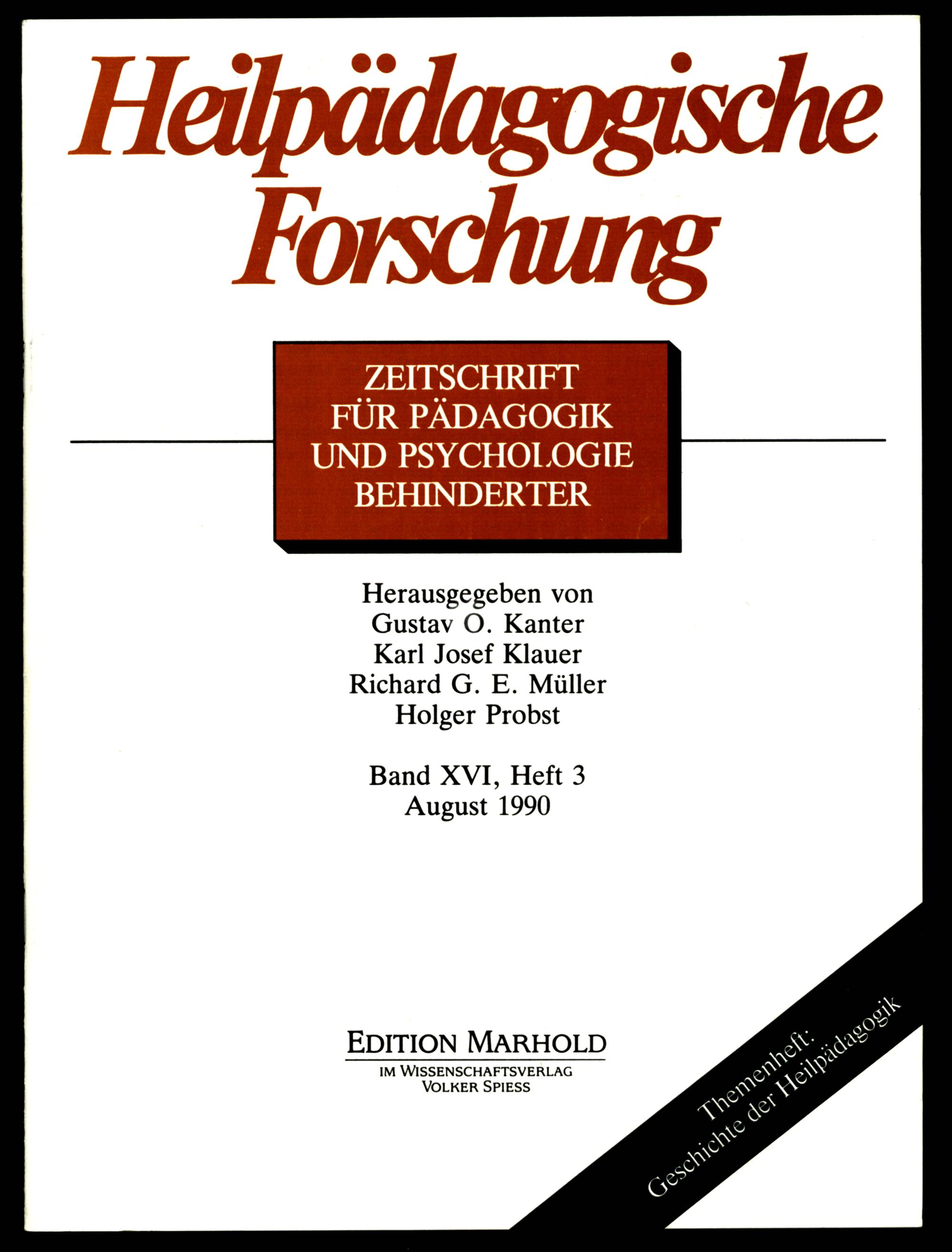 Heilpädagogische Forschung : Zeitschrift für Pädagogik und Psychologie bei Behinderungen