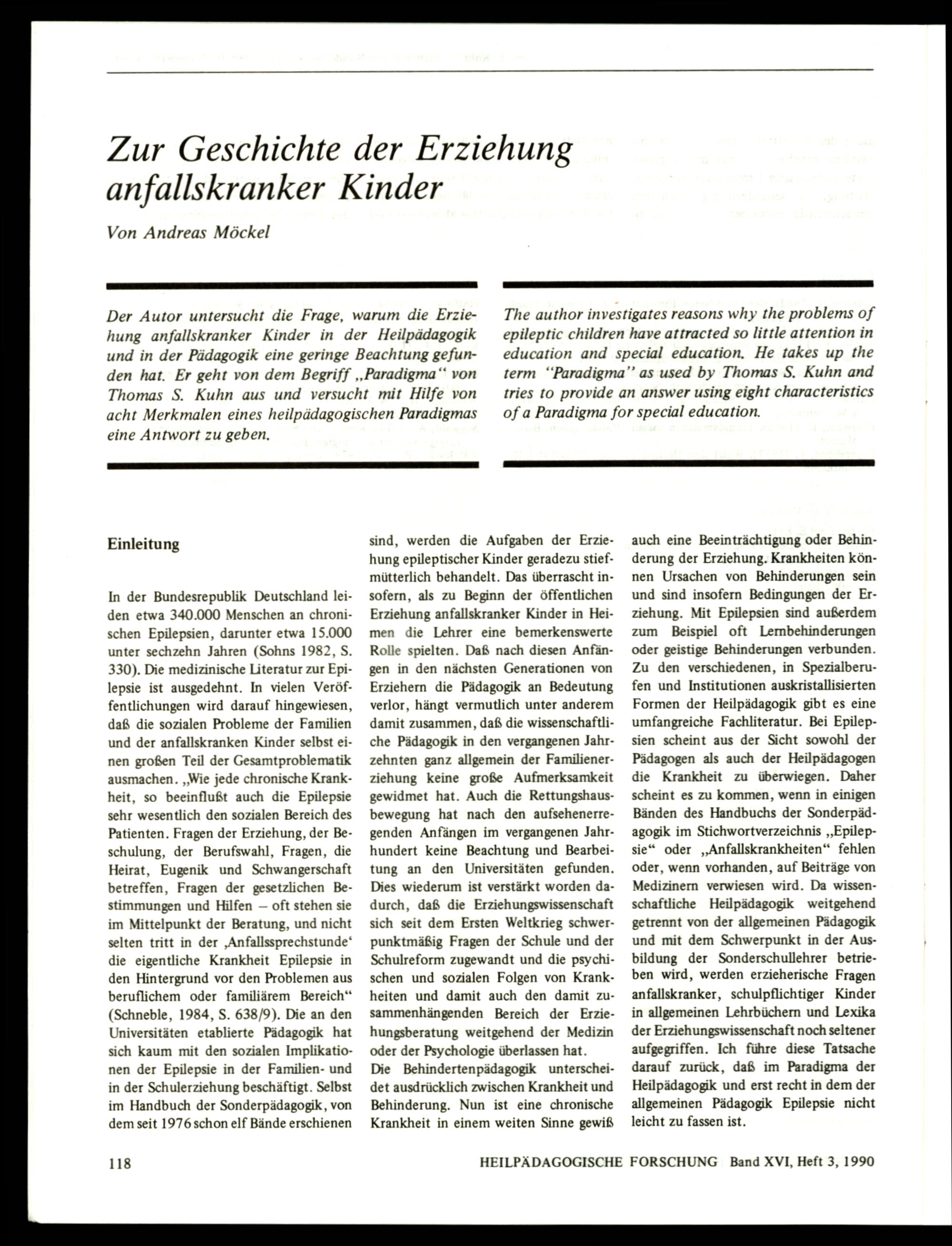Zur Geschichte der Erziehung anfallskranker Kinder
