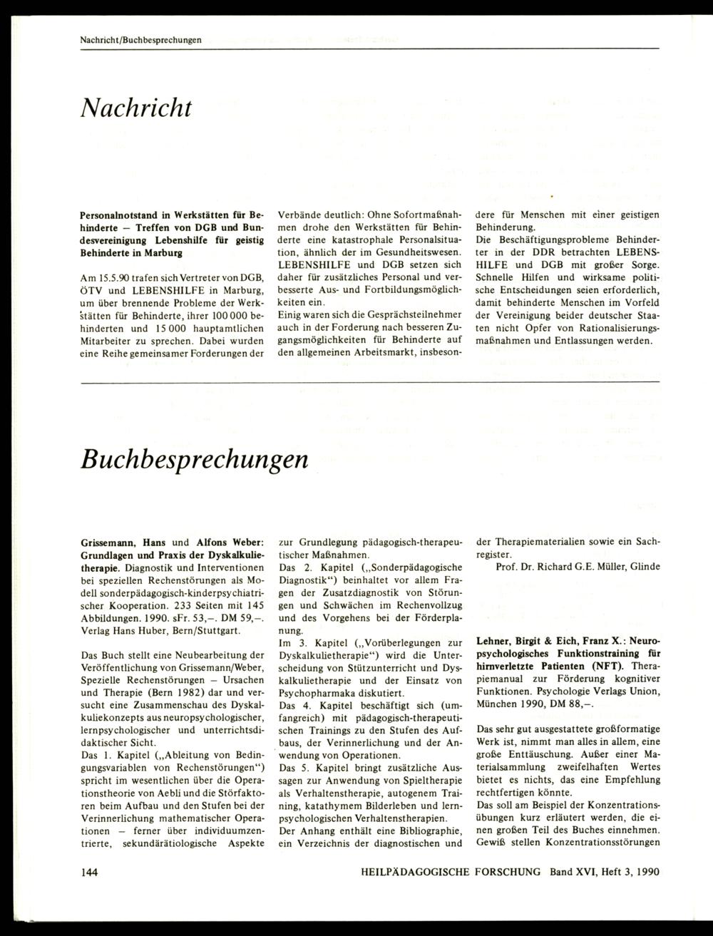 Heilpädagogische Forschung : Zeitschrift für Pädagogik und Psychologie bei Behinderungen