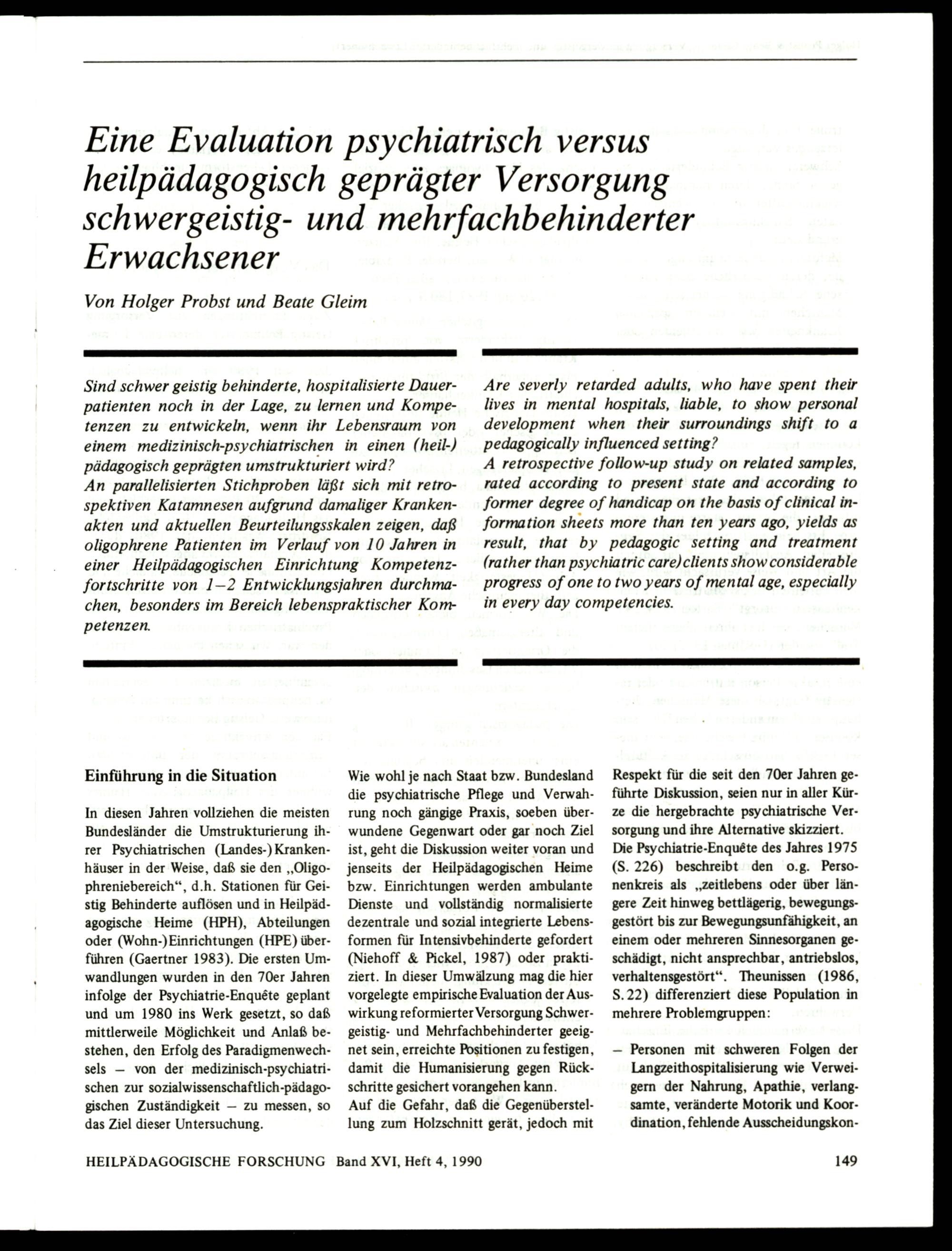 Heilpädagogische Forschung : Zeitschrift für Pädagogik und Psychologie bei Behinderungen