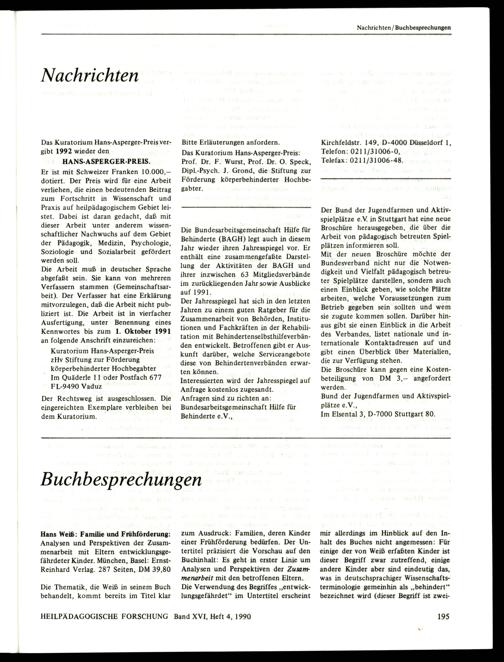 Heilpädagogische Forschung : Zeitschrift für Pädagogik und Psychologie bei Behinderungen
