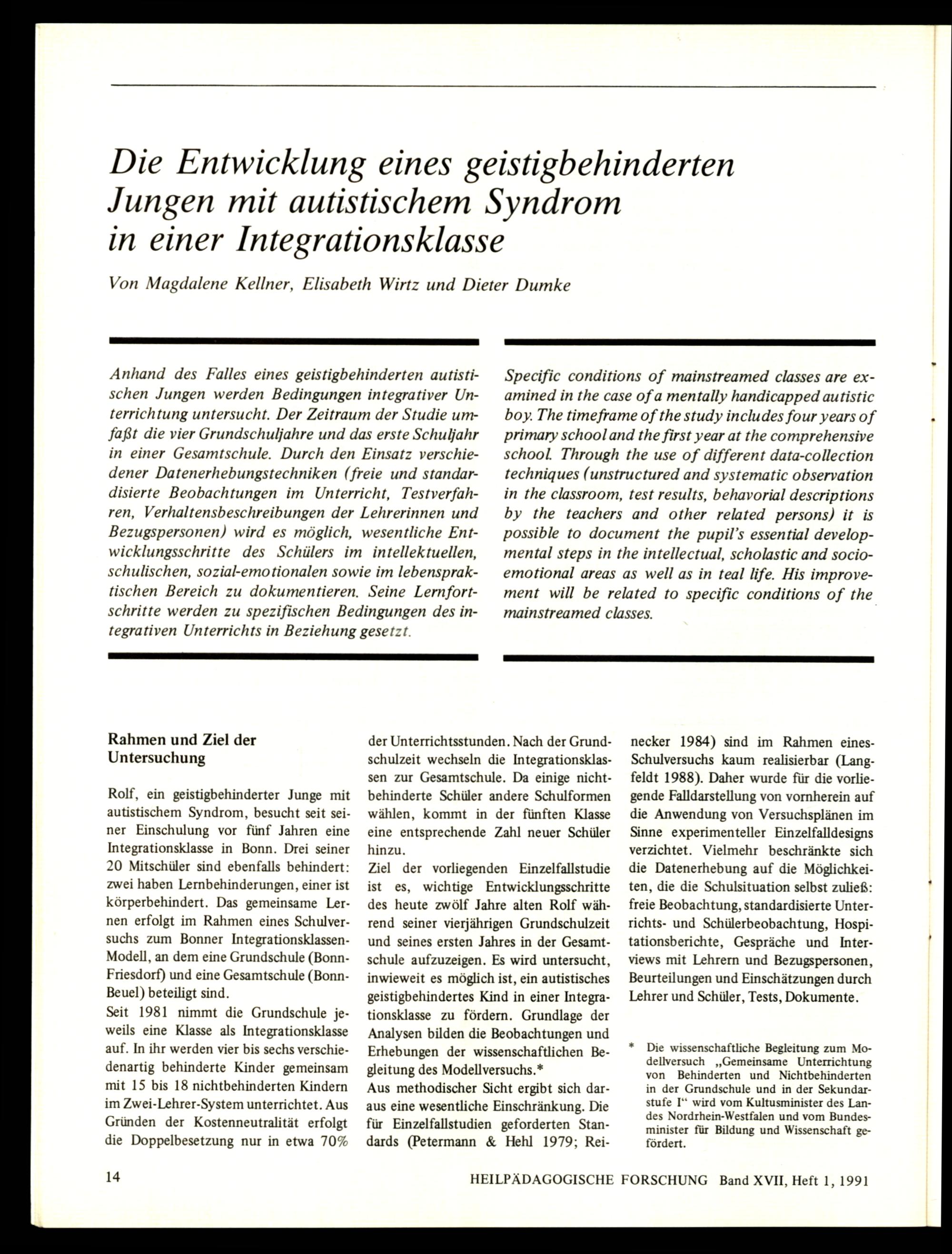Heilpädagogische Forschung : Zeitschrift für Pädagogik und Psychologie bei Behinderungen