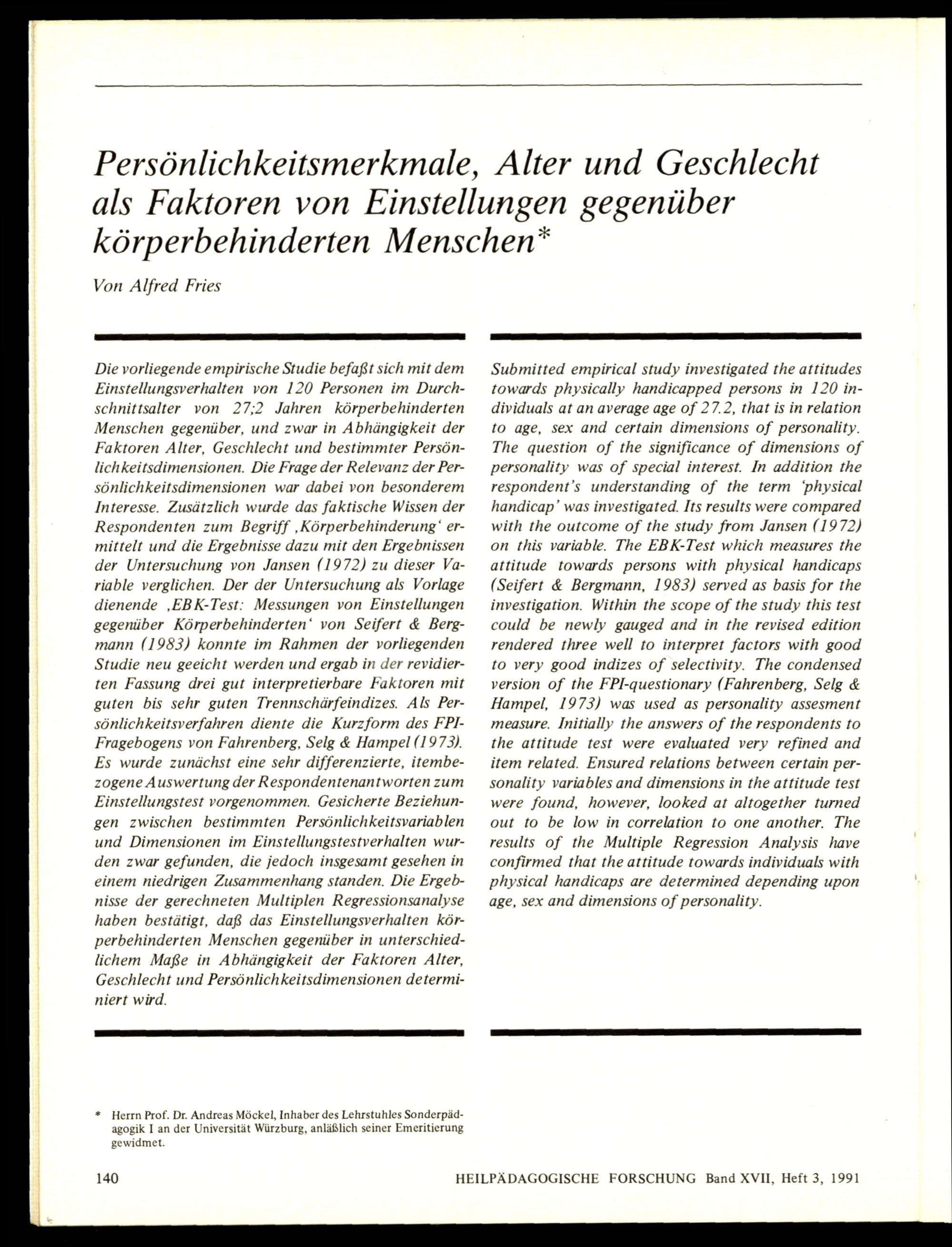 Heilpädagogische Forschung : Zeitschrift für Pädagogik und Psychologie bei Behinderungen