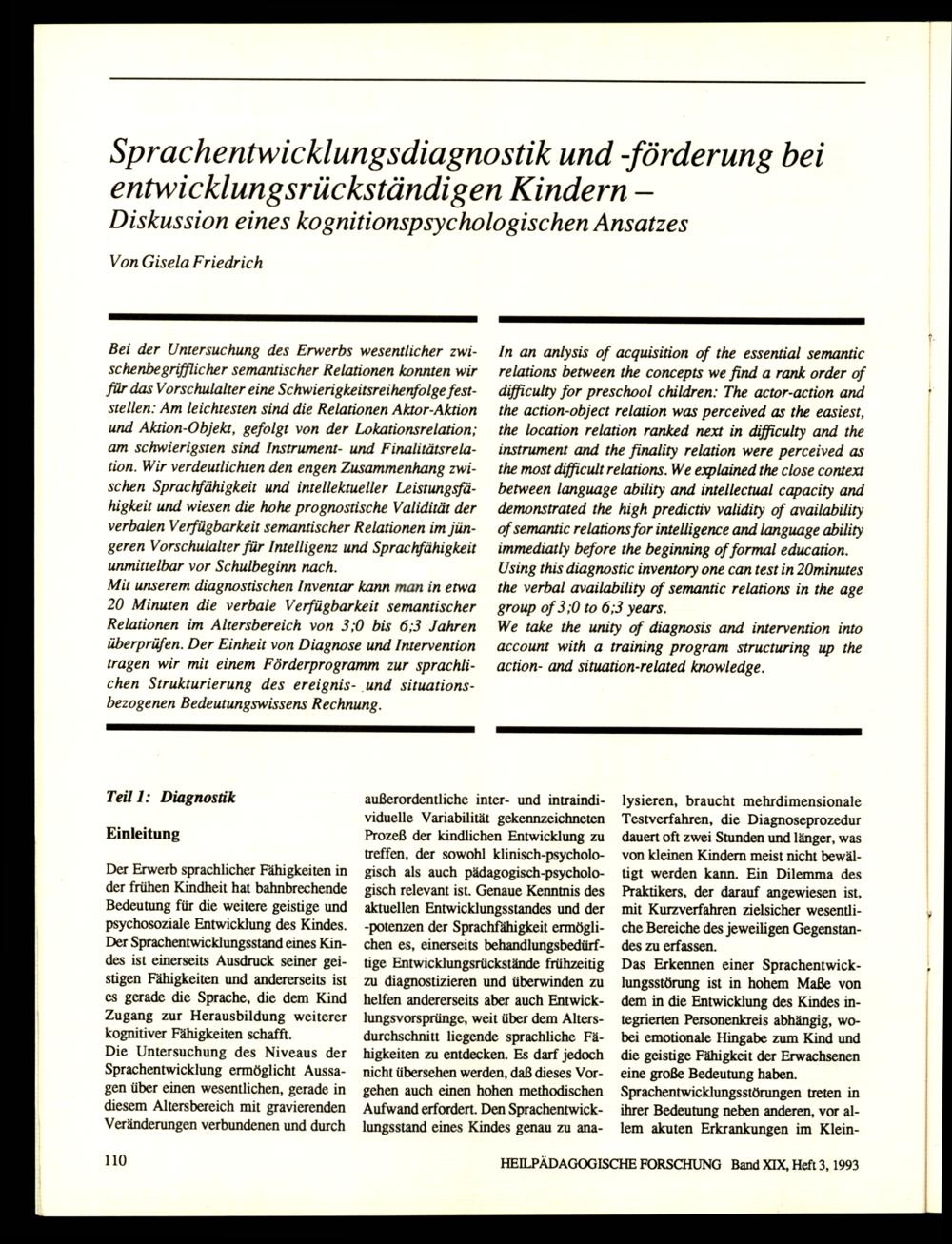 Sprachentwicklungsdiagnostik und -förderung bei entwicklungsrückständigen Kindern...