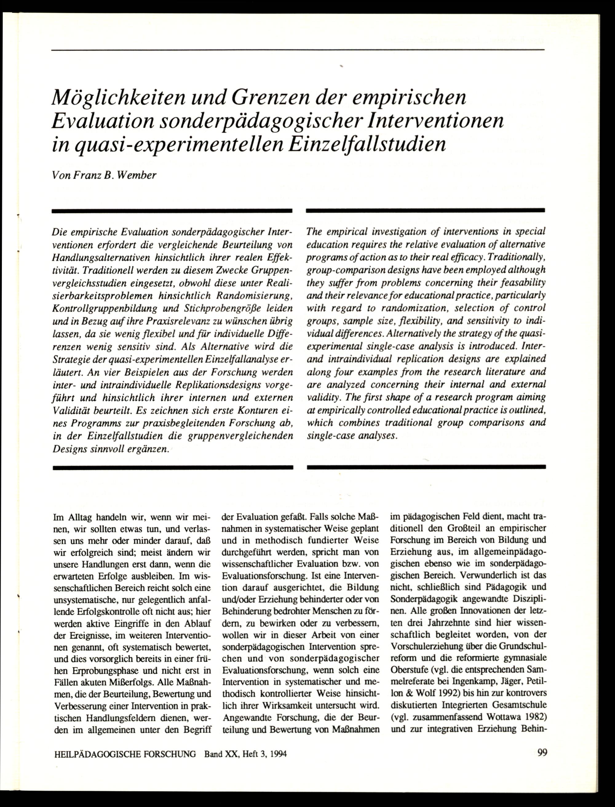 Möglichkeiten und Grenzen der empirischen Evaluation sonderpädagogischer Interventionen...