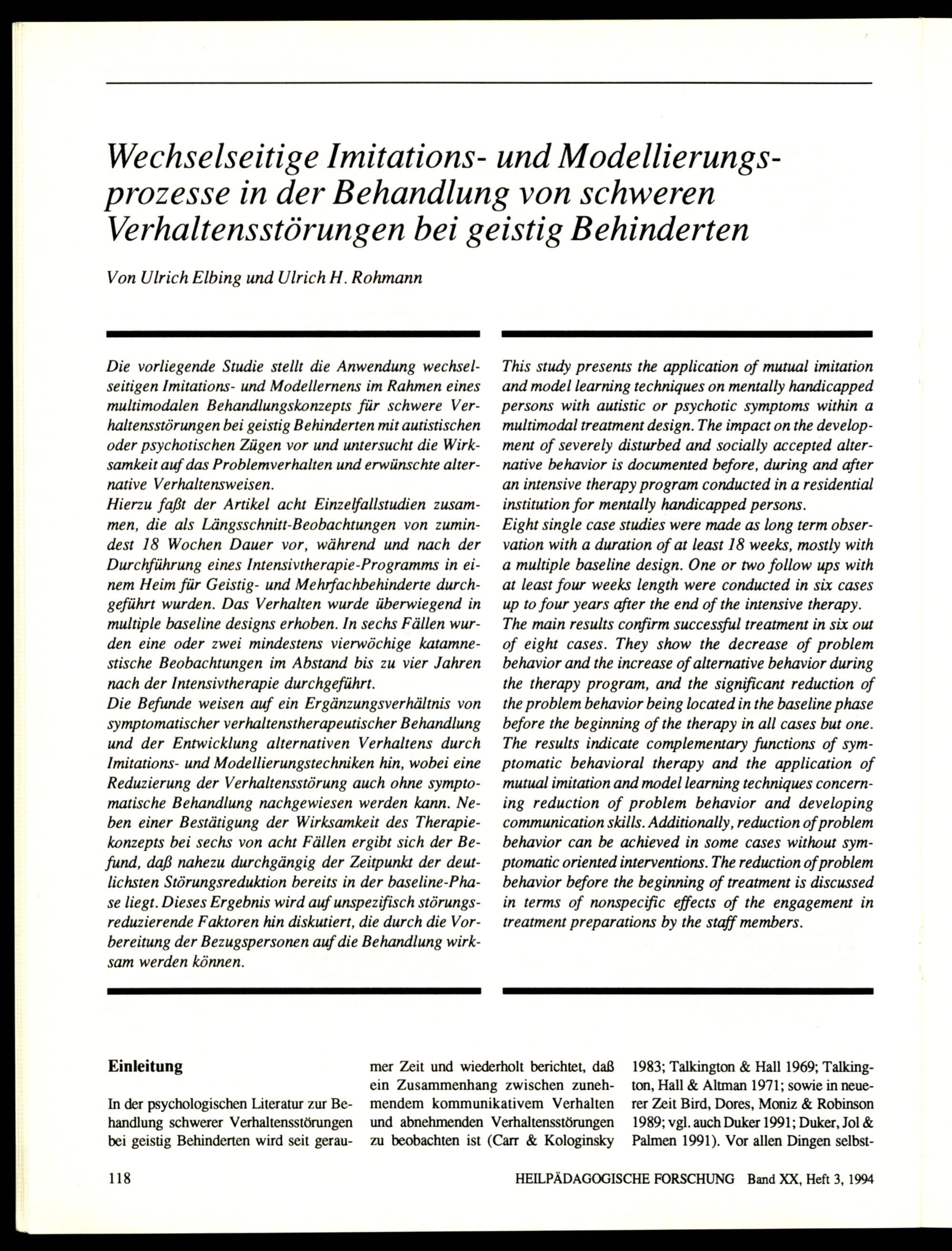 Wechselseitige Imitations- und Modellierungsprozesse in der Behandlung von schweren...