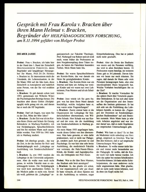 Gespräch mit Frau Karola v. Bracken über ihren Mann Helmut v. Bracken, Begründer...