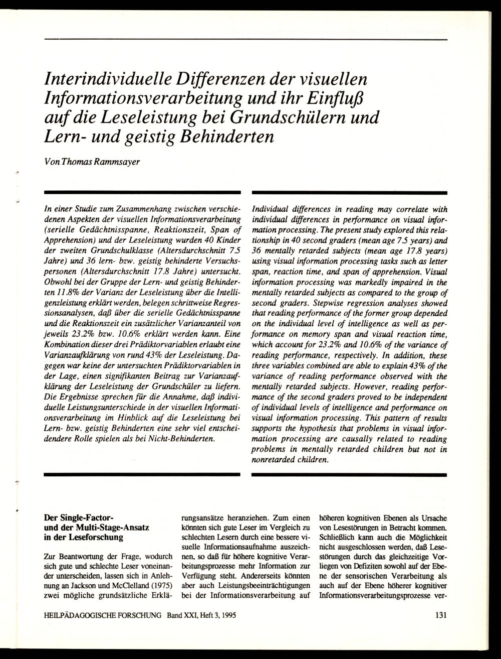 Interindividuelle Differenzen der visuellen Informationsverarbeitung und ihr Einfluß...