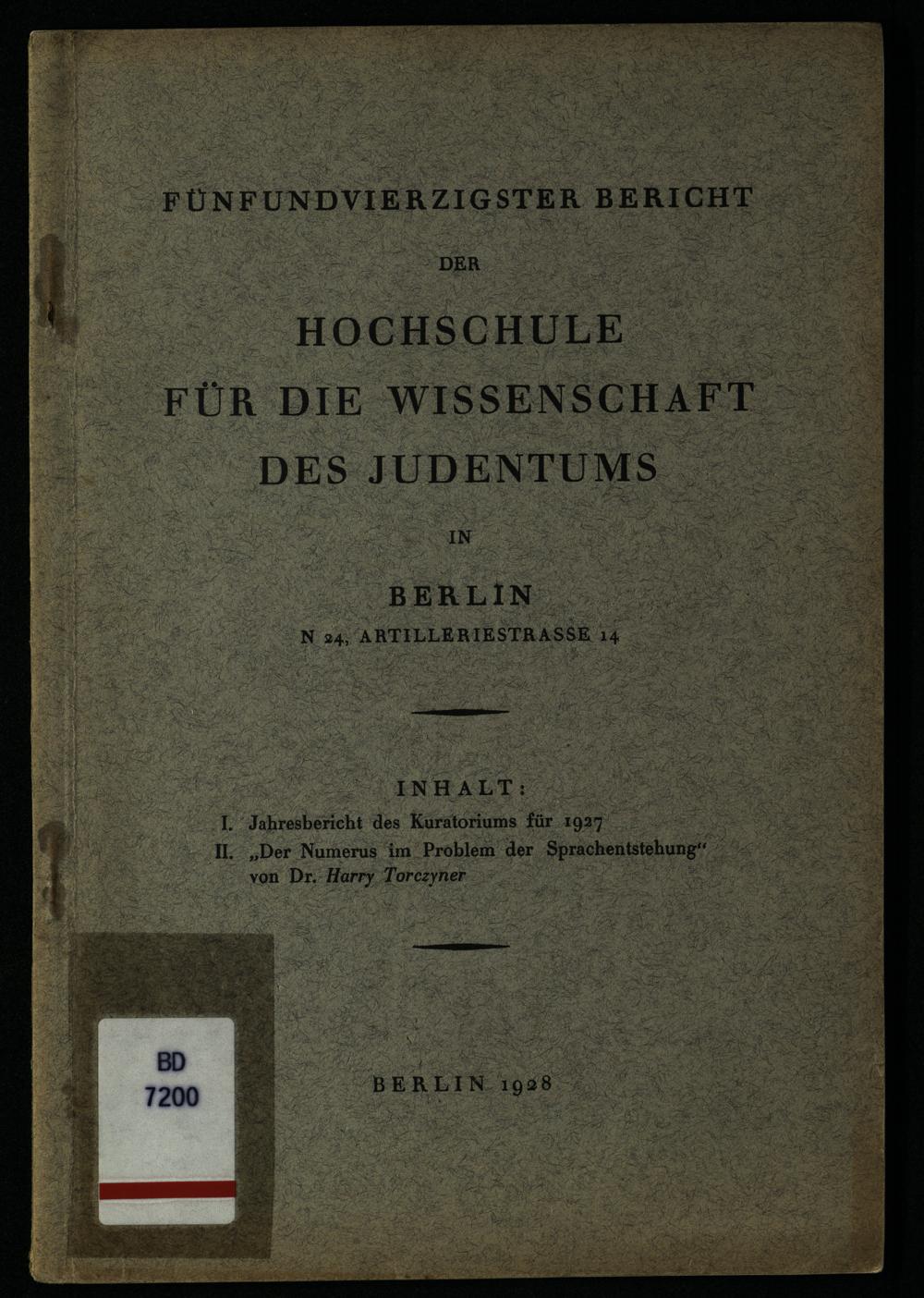 Bericht der Hochschule für die Wissenschaft des Judenthums in Berlin