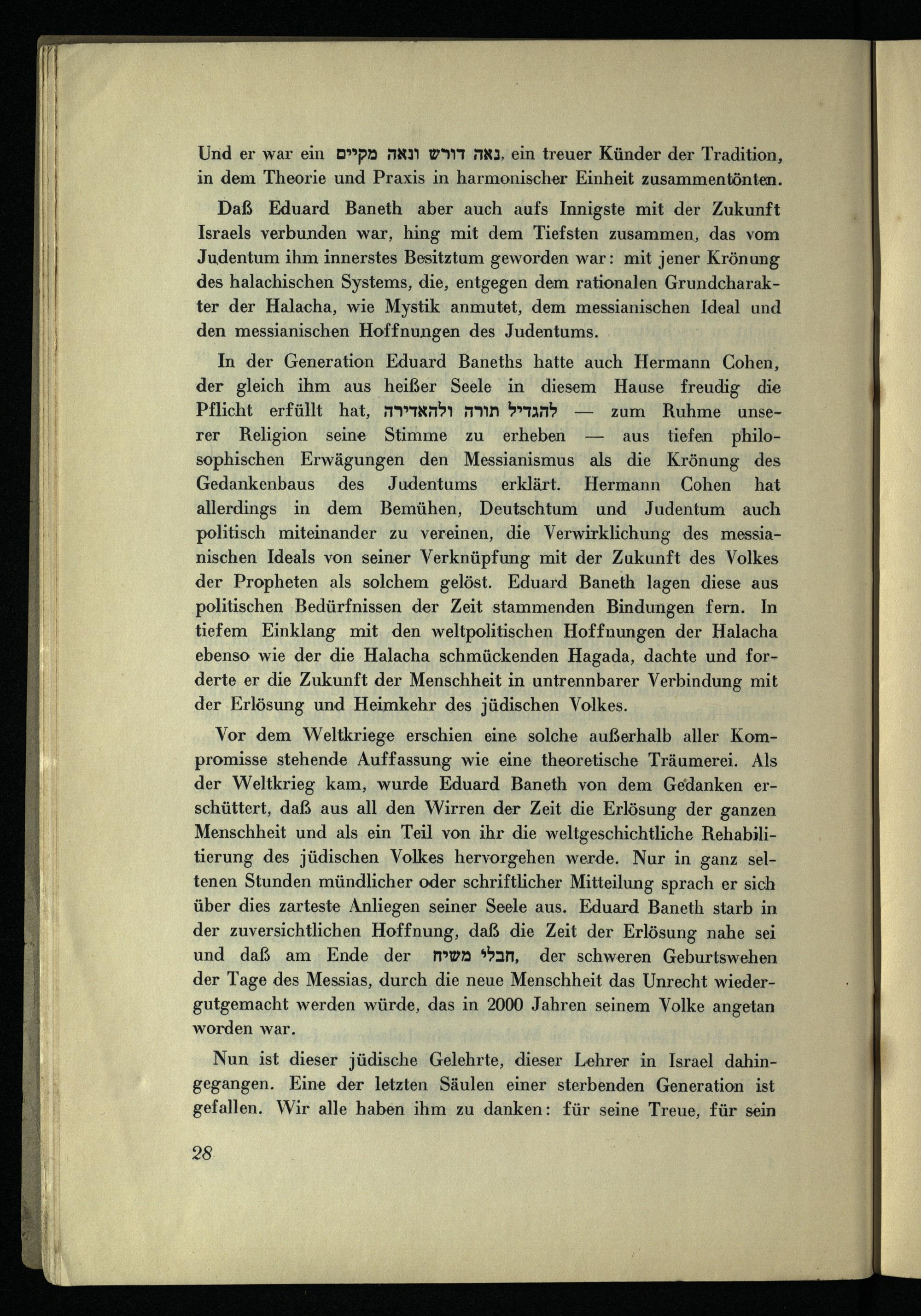 Reden bei der Trauerfeier für Prof. Dr. Eduard Baneth am 2. November 1930.
