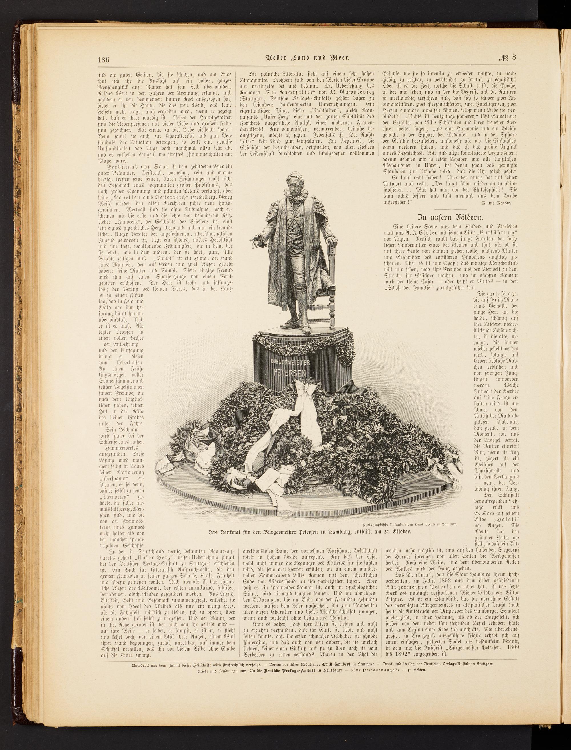Das Denkmal für den Bürgermeister petersen in Hamburg, enthüllt am