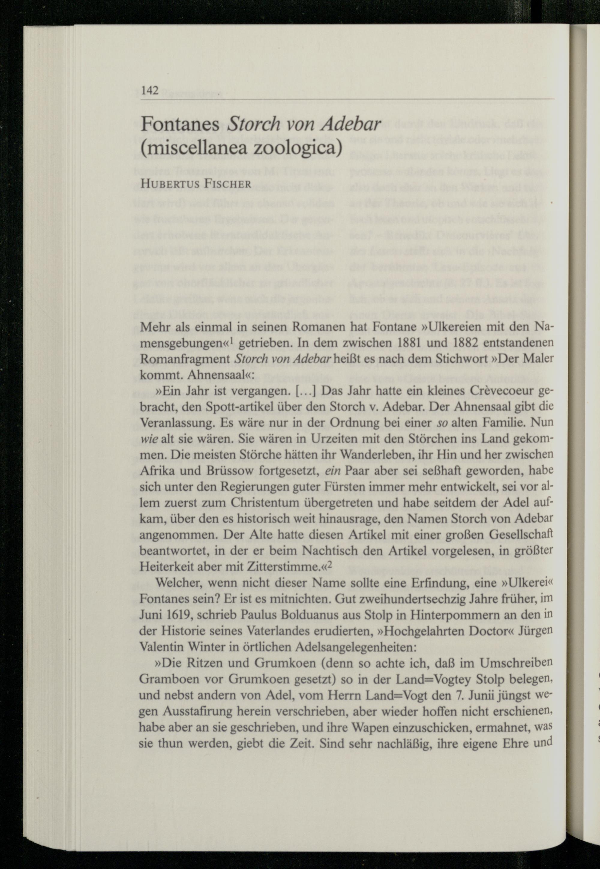 Hubertus Fischer: Fontanes Storch von Adebar (miscellanea zoologica)